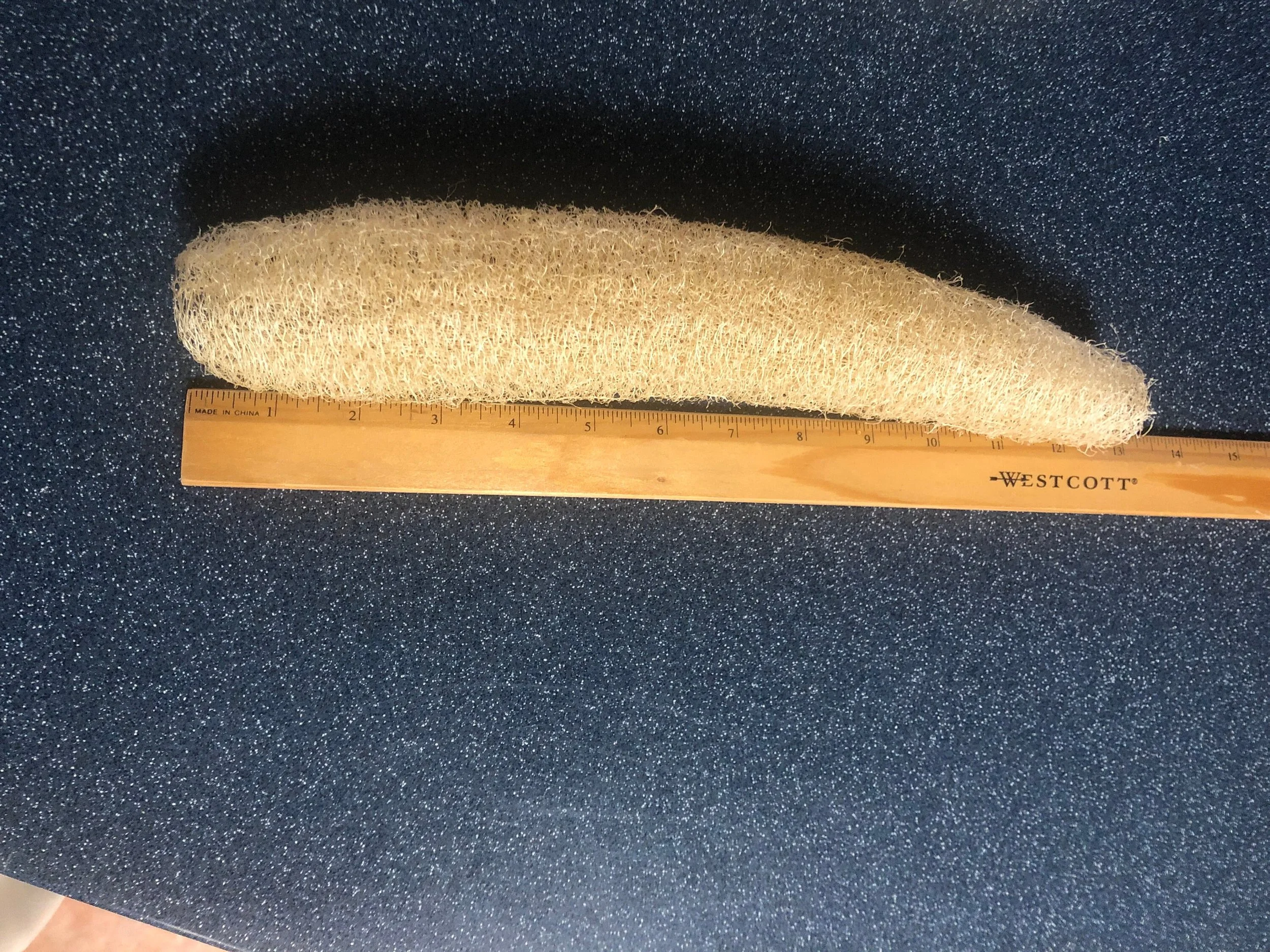 This loofah is a different variant than what we sell for soap hobbyists and animal treats. It was grown to be denser for a better exfoliant of dead skin cells. After each use, rinse and hang to extend the life. Each is approximately 4”L x 2”W but size can vary slightly.